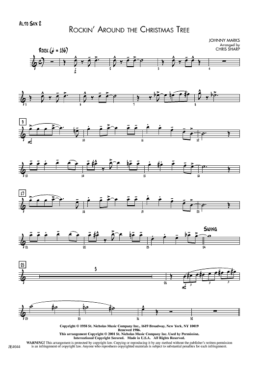 Digital Sheet Music for Rockin’ Around the Christmas Tree - Alto Sax 2 by Johnny Marks, Chris Sharp scored for Jazz Ensemble; id:455698