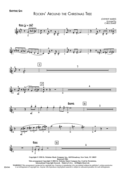 Digital Sheet Music for Rockin’ Around the Christmas Tree - Baritone Sax by Johnny Marks, Chris Sharp scored for Jazz Ensemble; id:455701