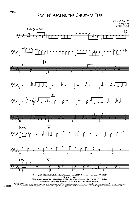 Digital Sheet Music for Rockin’ Around the Christmas Tree - Bass by Johnny Marks, Chris Sharp scored for Jazz Ensemble; id:455712