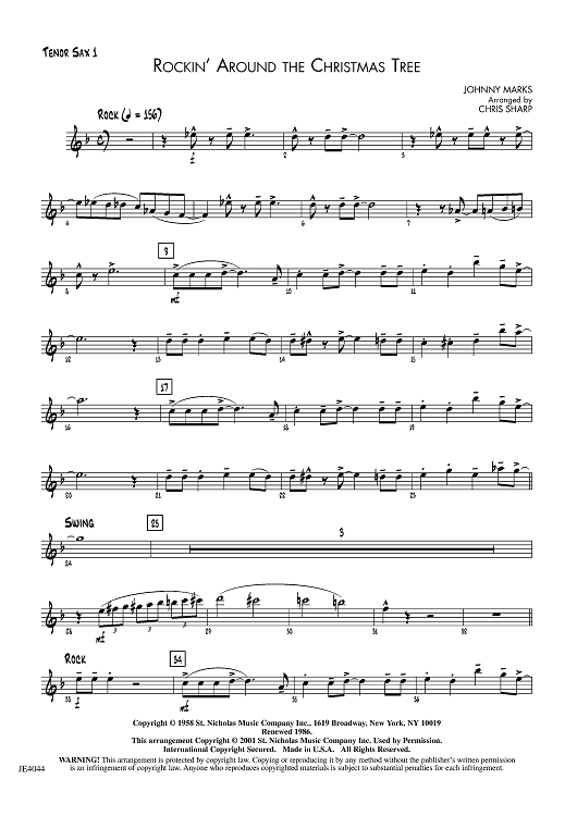 Digital Sheet Music for Rockin’ Around the Christmas Tree - Tenor Sax 1 by Johnny Marks, Chris Sharp scored for Jazz Ensemble; id:455699