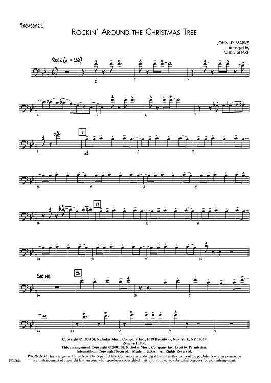 Digital Sheet Music for Rockin’ Around the Christmas Tree - Trombone 1 by Johnny Marks, Chris Sharp scored for Jazz Ensemble; id:455706