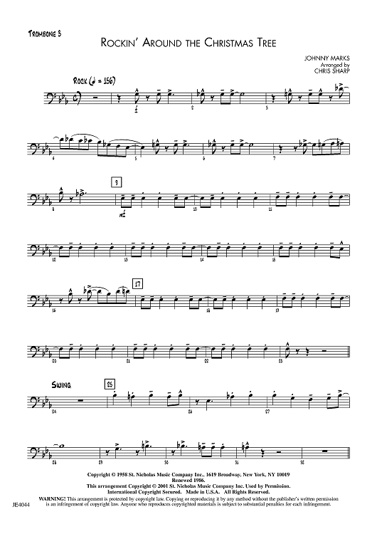 Digital Sheet Music for Rockin’ Around the Christmas Tree - Trombone 3 by Johnny Marks, Chris Sharp scored for Jazz Ensemble; id:455708