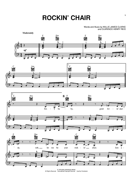 Digital Sheet Music for Rockin' Chair by Willie Clarke, Gwen McCrae, Clarence Henry Reid scored for Piano/Vocal/Chords; id:367917