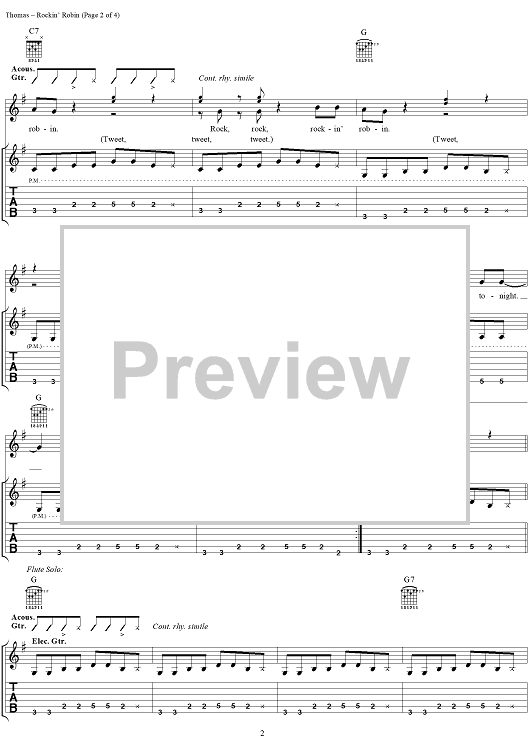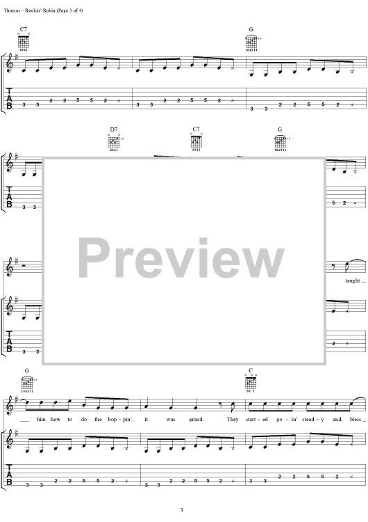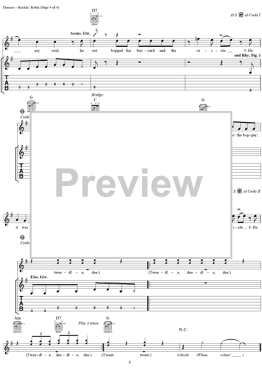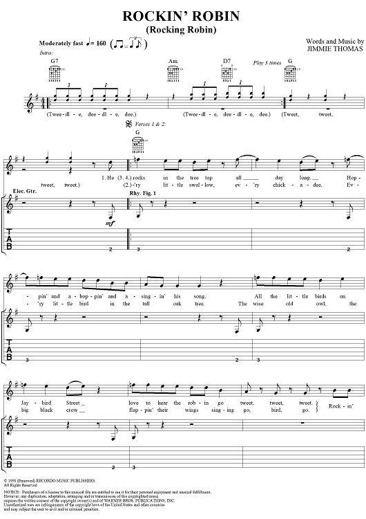Digital Sheet Music for Rockin' Robin by Jimmie Thomas, Bobby Day scored for Easy Guitar Tab/Vocal; id:234662