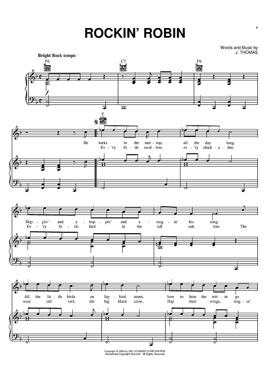 Digital Sheet Music for Rockin' Robin by Michael Jackson, Bobby Day, J. Thomas scored for Piano/Vocal/Chords; id:395161