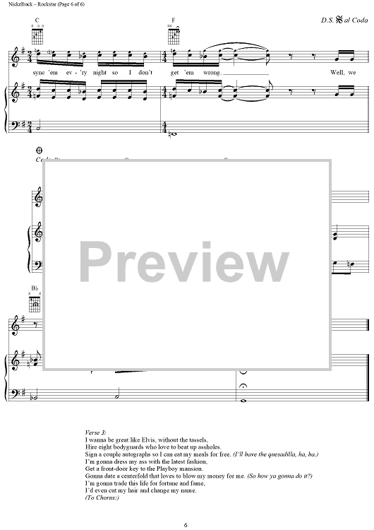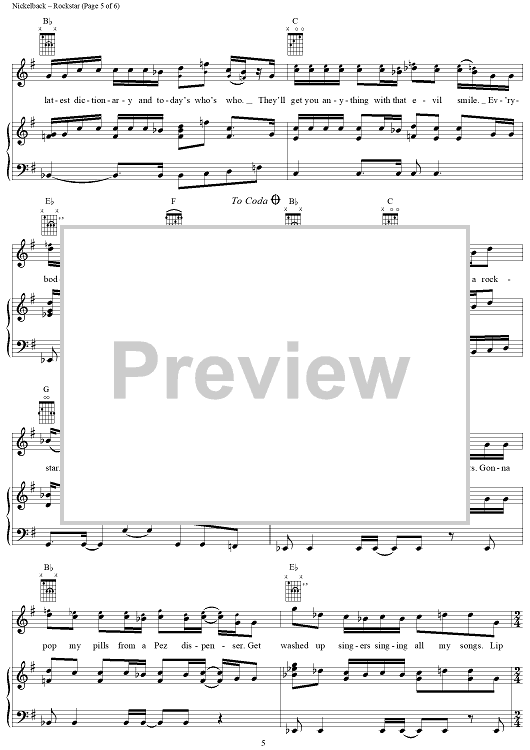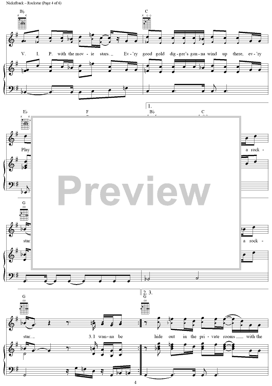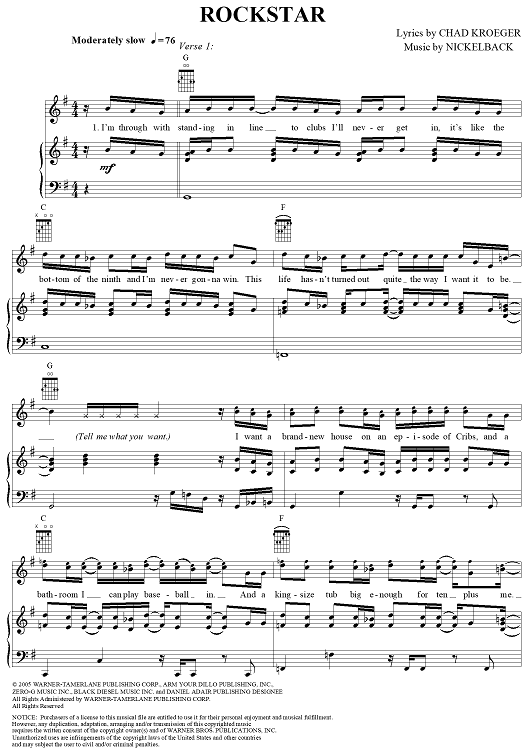Digital Sheet Music for Rockstar by Nickelback, Chad Kroeger scored for Piano/Vocal/Chords; id:361280
