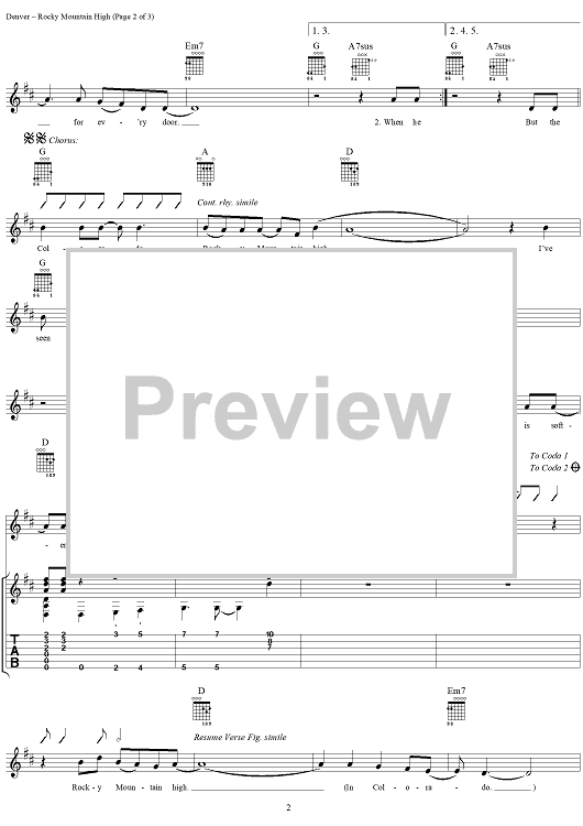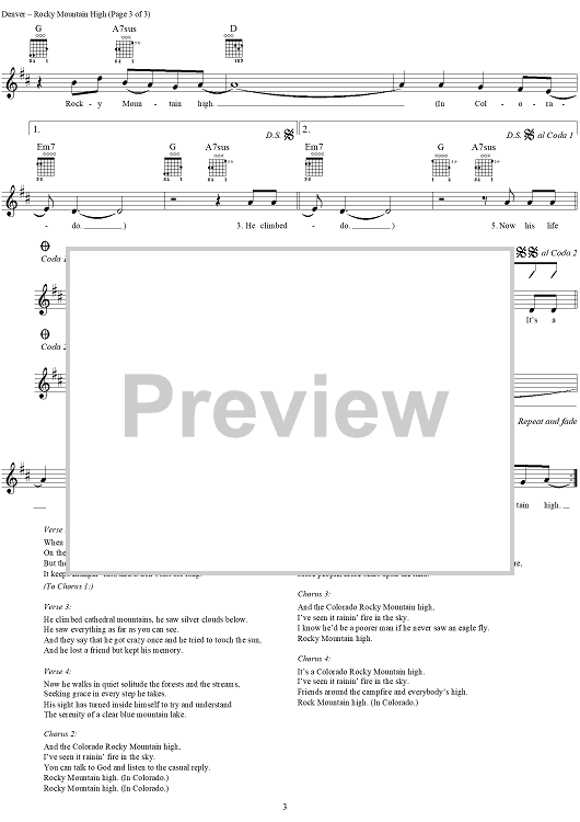 "Rocky Mountain High" Sheet Music by John Denver