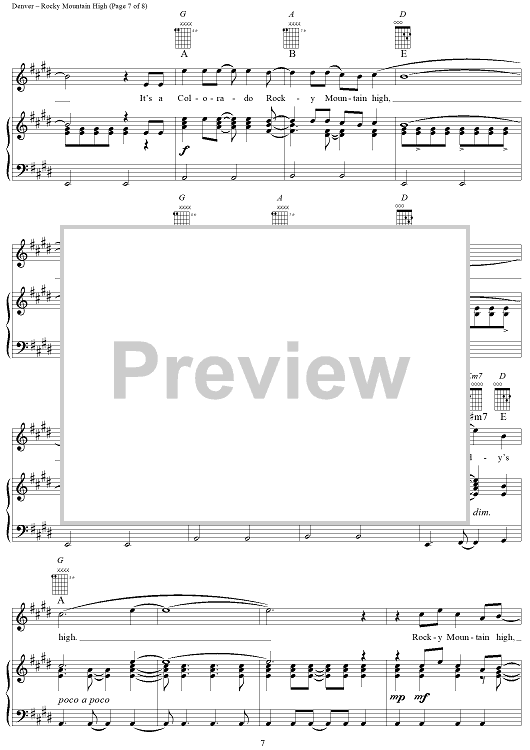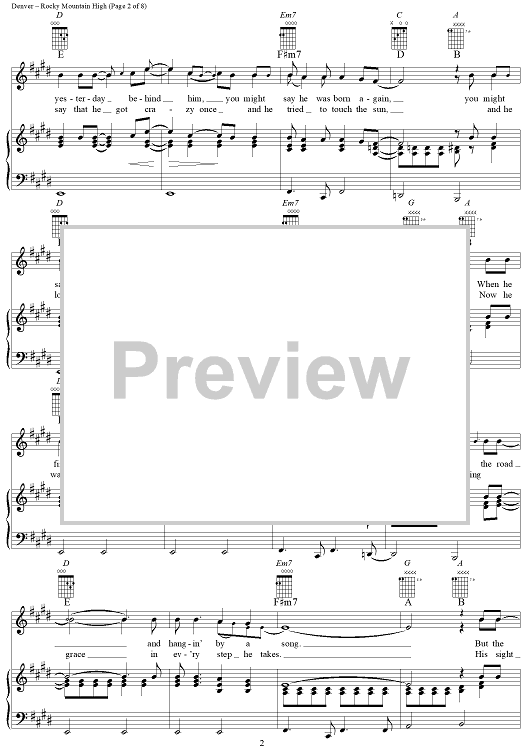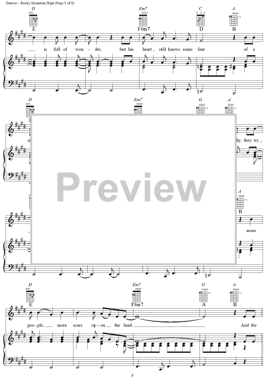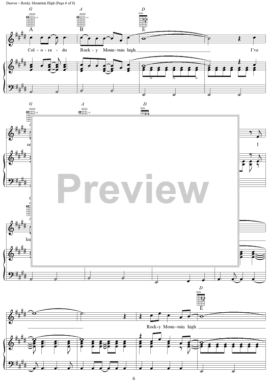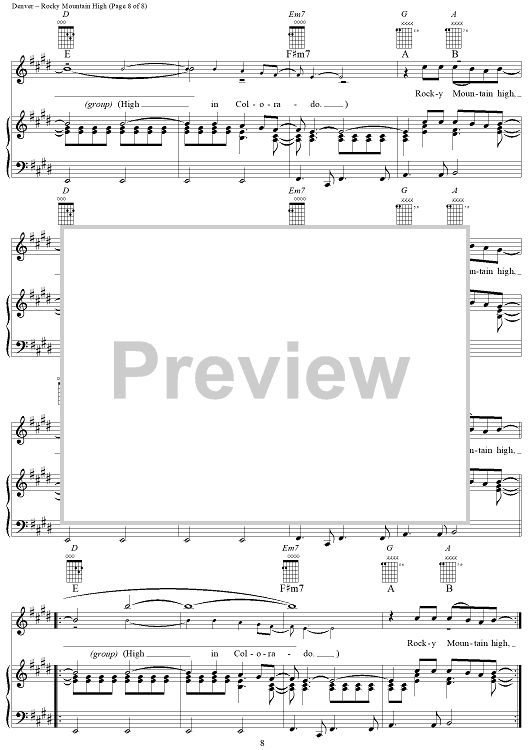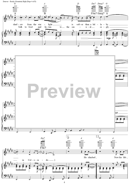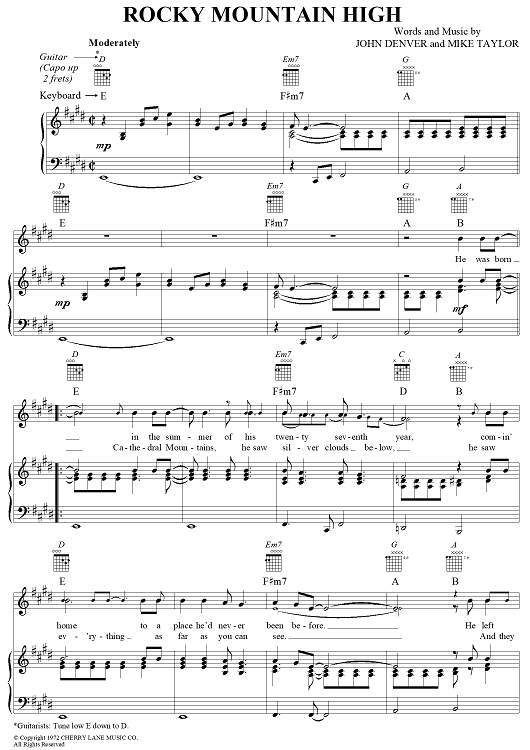 Digital Sheet Music for Rocky Mountain High by Mike Taylor, John Denver scored for Piano/Vocal/Chords; id:366142