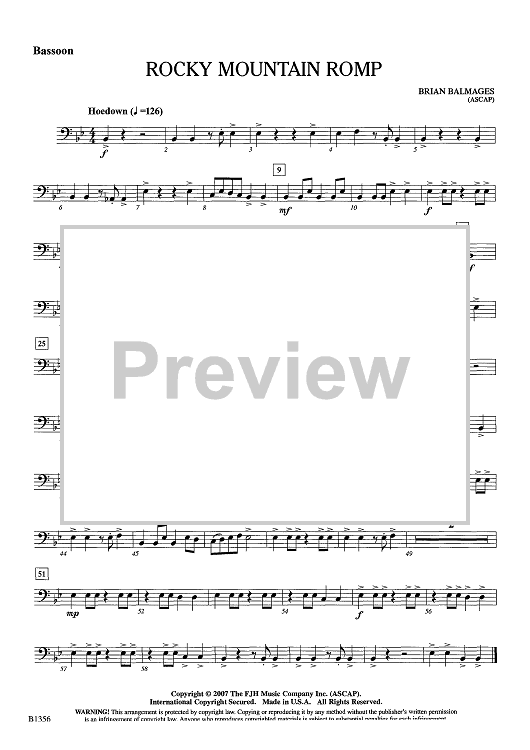 "Rocky Mountain Romp - Bassoon" Sheet Music by Brian Balmages