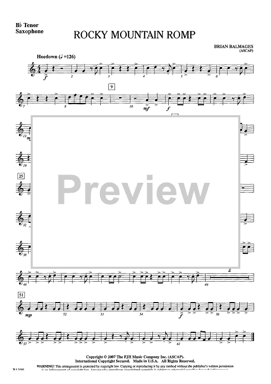 "Rocky Mountain Romp - Bb Tenor Sax" Sheet Music by Brian Balmages