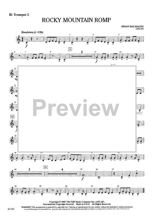 "Rocky Mountain Romp - Bb Trumpet 2" Sheet Music by Brian Balmages