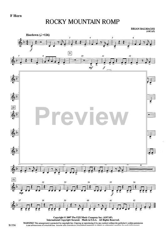 "Rocky Mountain Romp - F Horn" Sheet Music by Brian Balmages