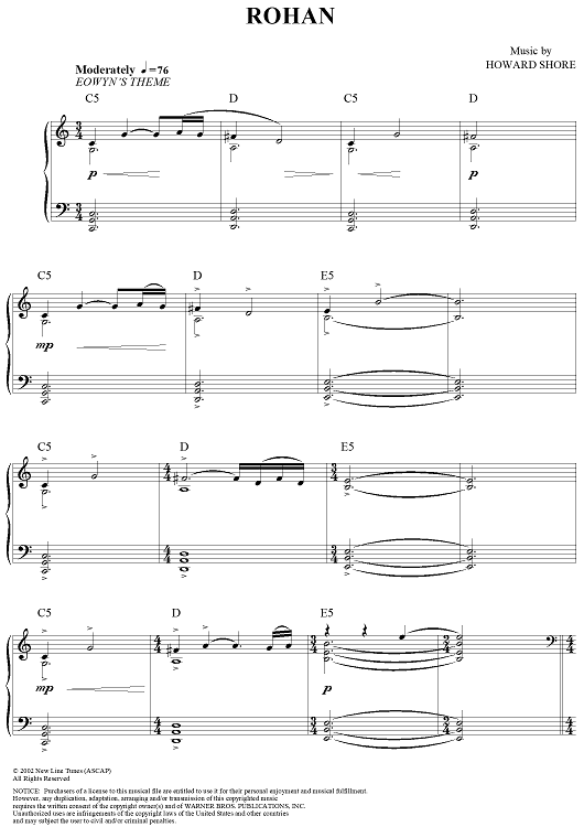 Digital Sheet Music for Rohan by Howard Shore scored for Piano Solo; id:295130