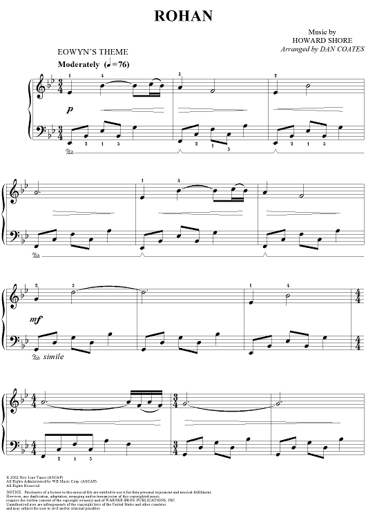 Digital Sheet Music for Rohan by Dan Coates, Howard Shore scored for Easy Piano; id:362522