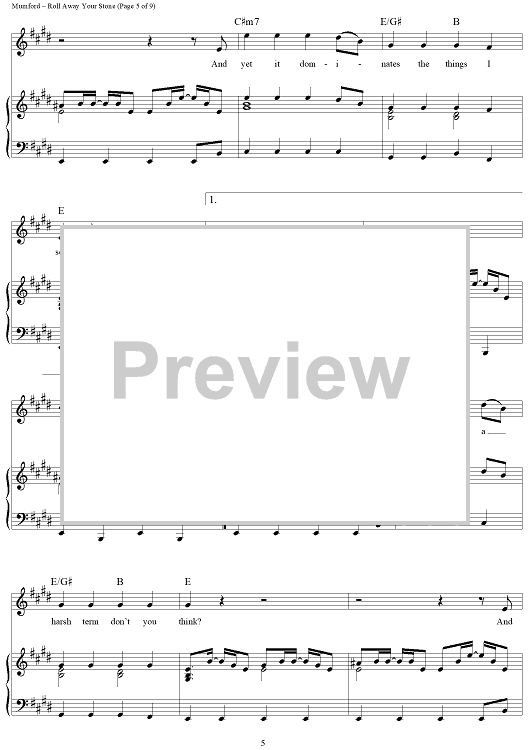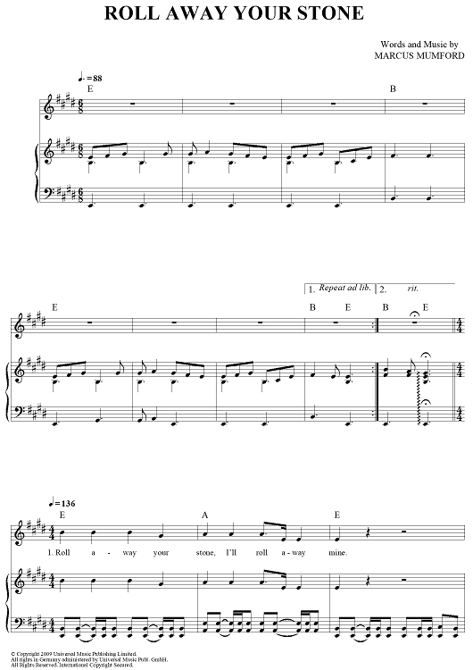 Digital Sheet Music for Roll Away Your Stone by Marcus Mumford, Mumford & Sons scored for Piano/Vocal/Chords; id:428436