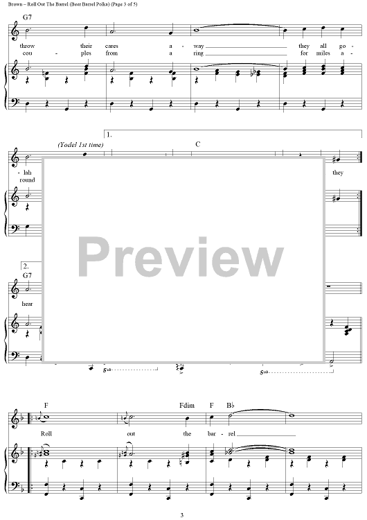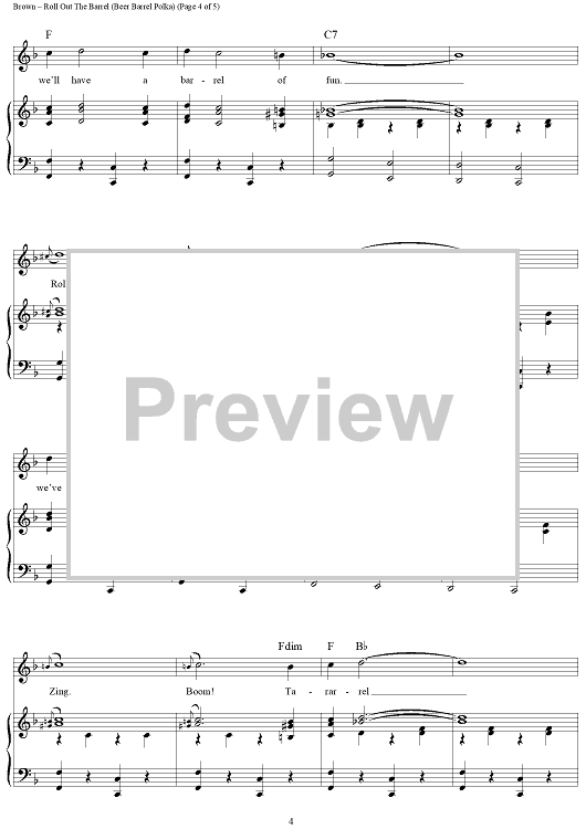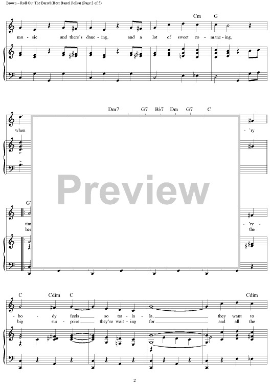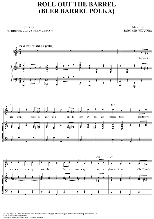 Digital Sheet Music for Roll Out The Barrel (Beer Barrel Polka) by Lew Brown, Jaromir Vejvoda, Vaclav Zeman scored for Piano/Vocal/Chords; id:435275