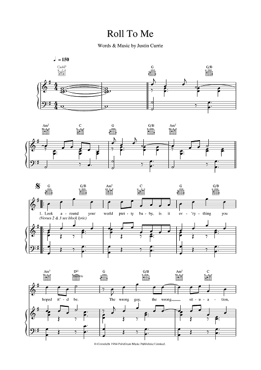 Digital Sheet Music for Roll To Me by Del Amitri scored for Piano/Vocal/Chords; id:376680