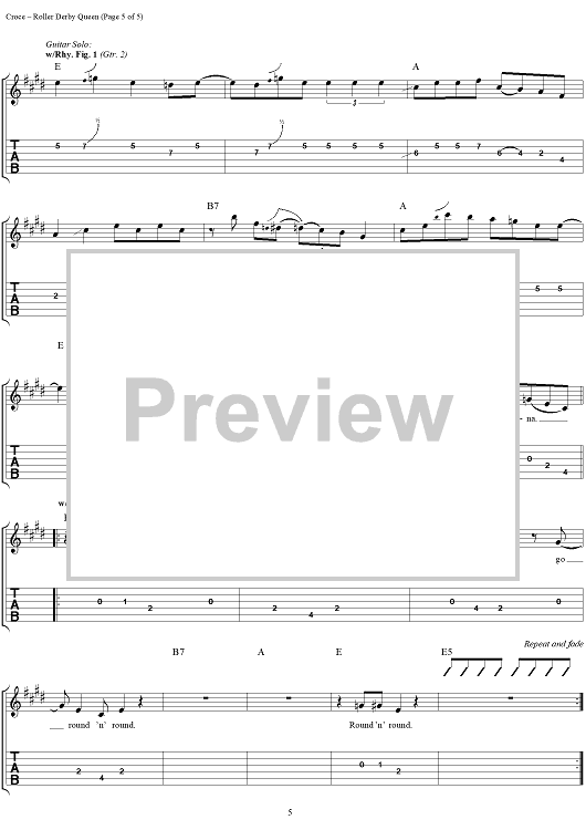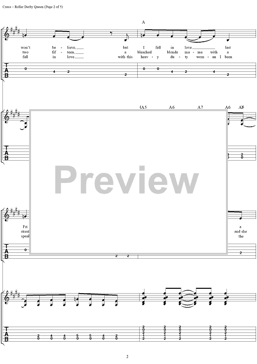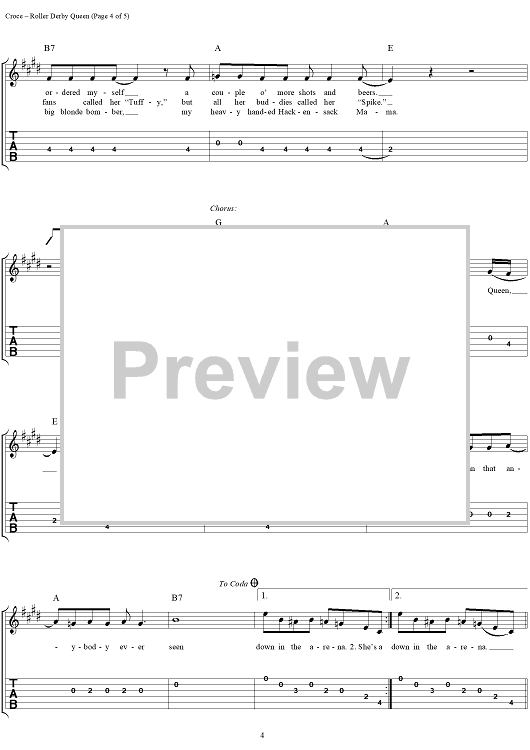 "Roller Derby Queen" Sheet Music by Jim Croce