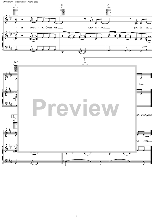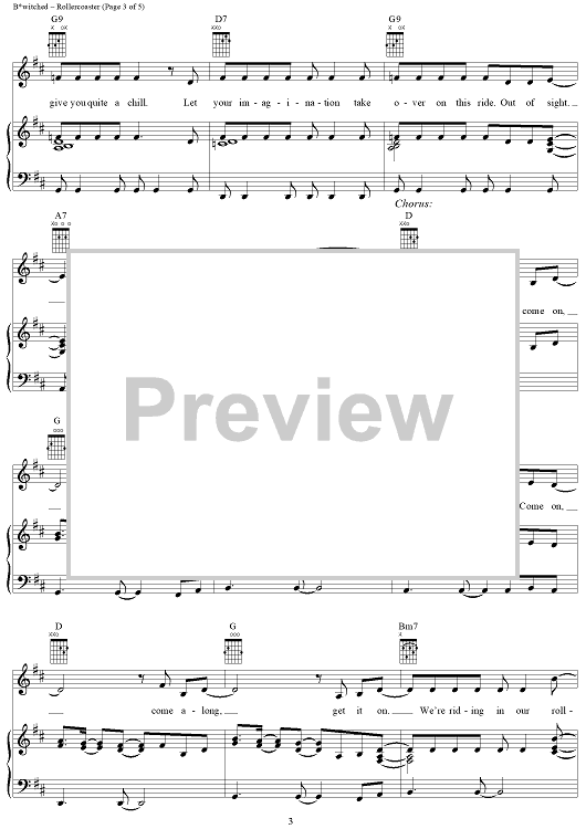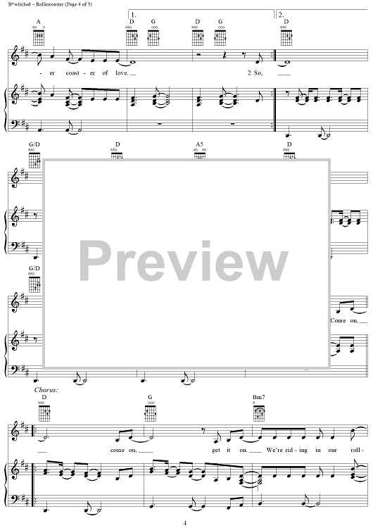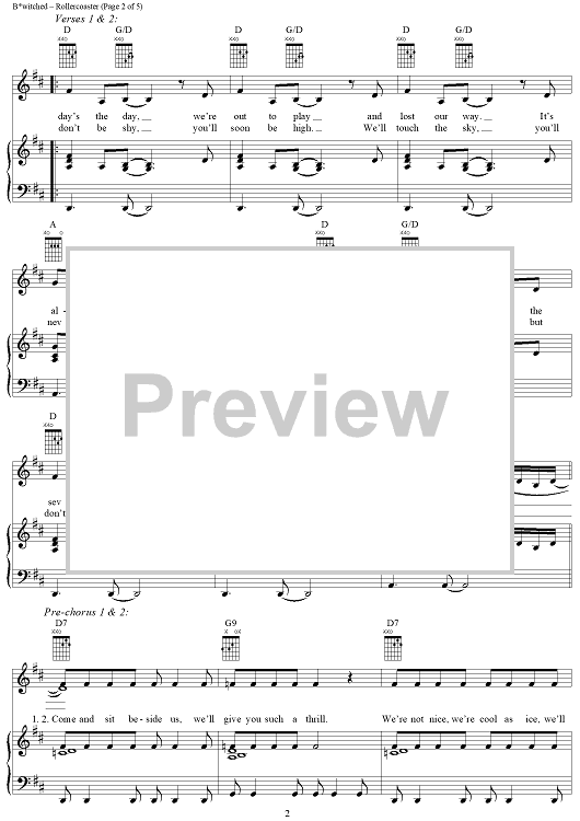 Digital Sheet Music for Rollercoaster by Hedges Brannigan, B*Witched, Tracy Ackerman scored for Piano/Vocal/Chords; id:273531