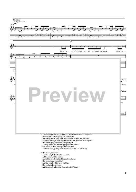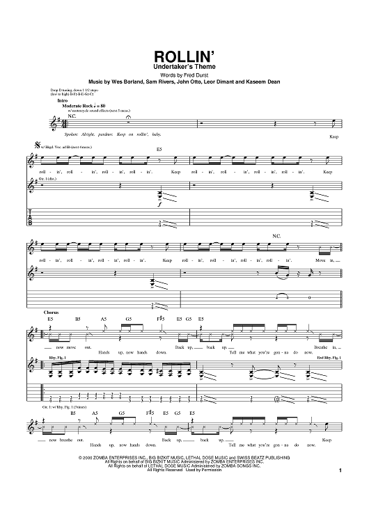 Digital Sheet Music for Rollin' by Wes Borland, Sam Rivers, John Otto, Leor Dimant, Fred Durst, Limp Bizkit, Swizz Beatz scored for Guitar Tab; id:381848