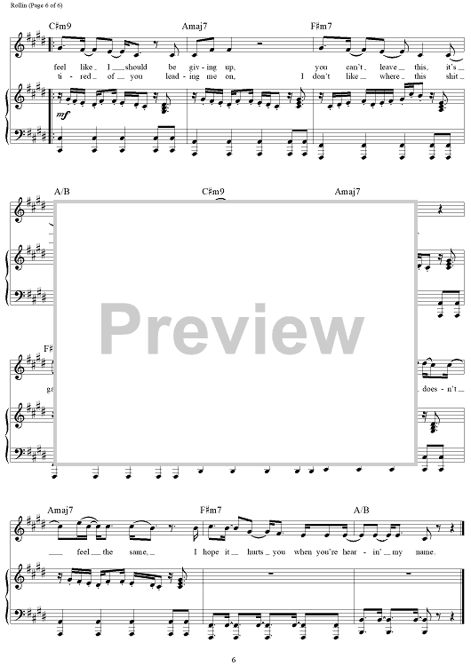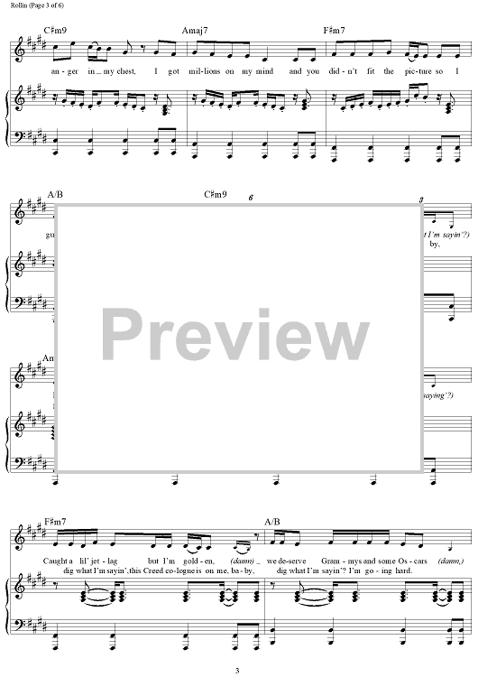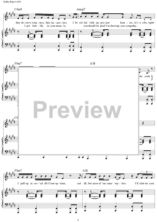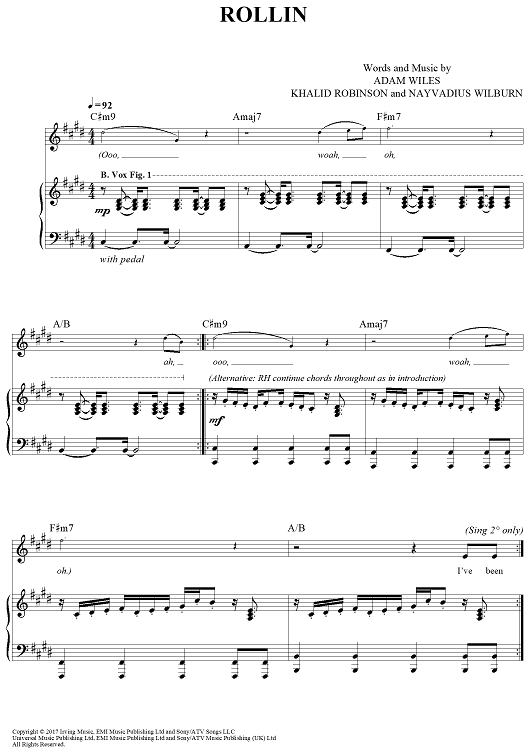 Digital Sheet Music for Rollin by Calvin Harris, Adam Wiles, Khalid Robinson, Nayvadius Wilburn scored for Piano/Vocal/Chords; id:464852