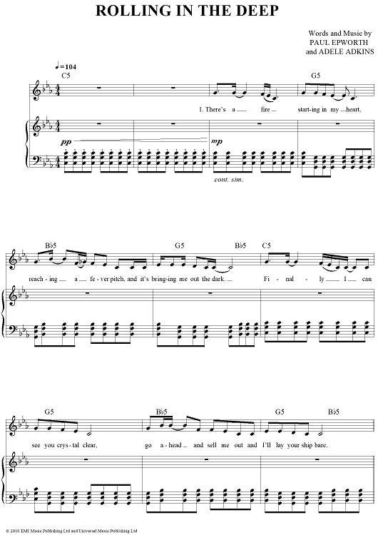 Digital Sheet Music for Rolling In The Deep by Paul Epworth, Adele Adkins, Adele scored for Piano/Vocal/Chords; id:418508