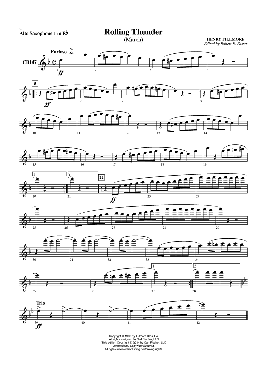 Digital Sheet Music for Rolling Thunder - Alto Saxophone 1 by Henry Fillmore, Robert E. Foster scored for Concert Band; id:450812