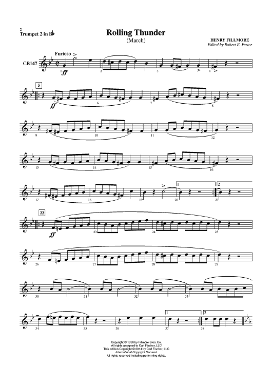 Digital Sheet Music for Rolling Thunder - Cornet 2 in Bb by Henry Fillmore, Robert E. Foster scored for Concert Band; id:450817