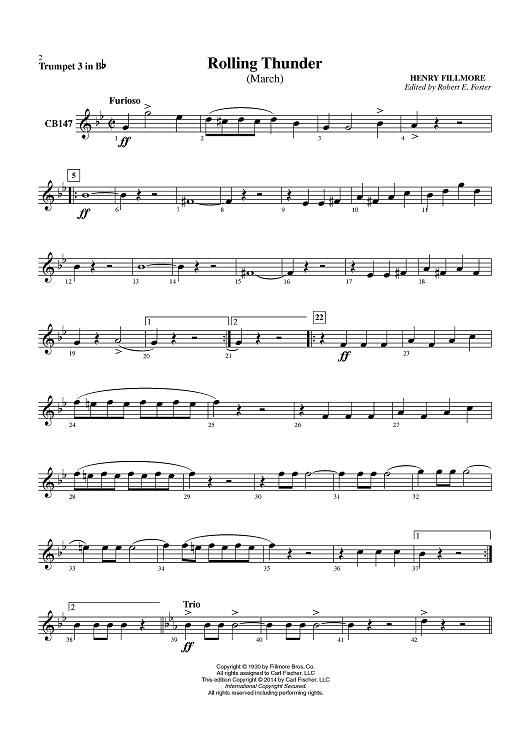 Digital Sheet Music for Rolling Thunder - Cornet 3 in Bb by Henry Fillmore, Robert E. Foster scored for Concert Band; id:450818