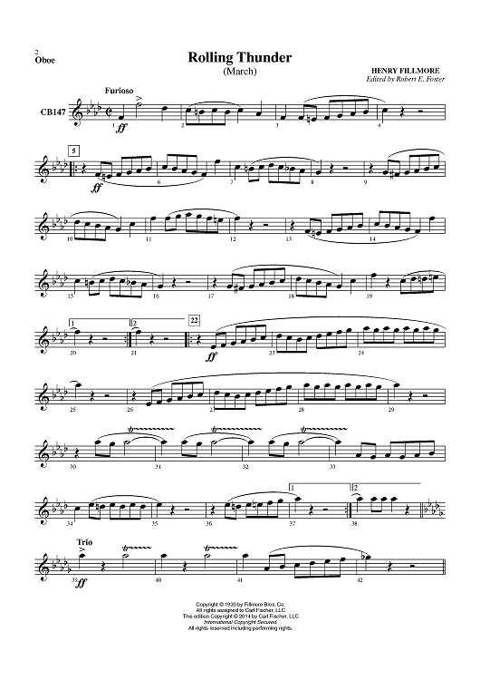 "Rolling Thunder - Oboe" Sheet Music by Henry Fillmore