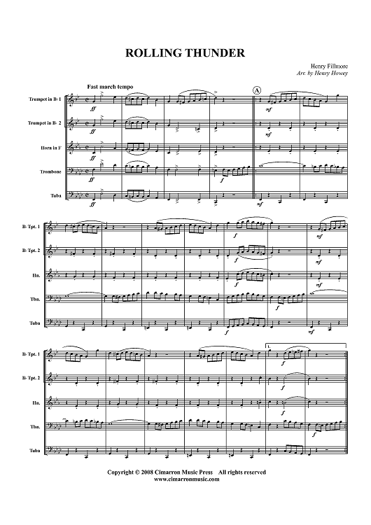 Digital Sheet Music for Rolling Thunder - Score by Henry Fillmore, Henry Howey scored for Brass Quintet; id:417066