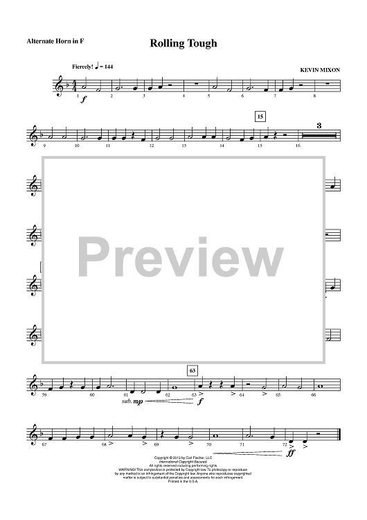 Digital Sheet Music for Rolling Tough - Alternate Horn in F by Kevin Mixon scored for Concert Band; id:436014