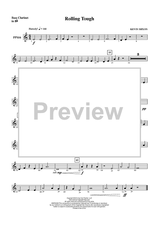 Digital Sheet Music for Rolling Tough - Bass Clarinet (opt. Euphonium TC) by Kevin Mixon scored for Concert Band; id:436009