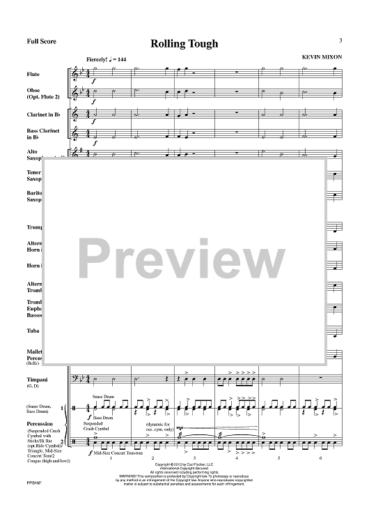 Digital Sheet Music for Rolling Tough - Score by Kevin Mixon scored for Concert Band; id:436005