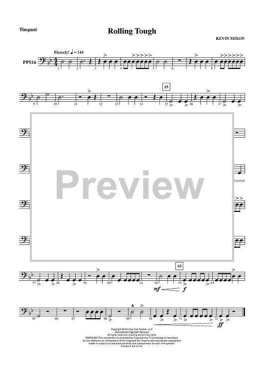 Digital Sheet Music for Rolling Tough - Timpani by Kevin Mixon scored for Concert Band; id:436021