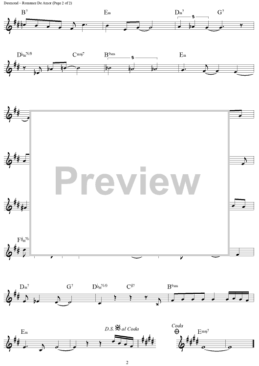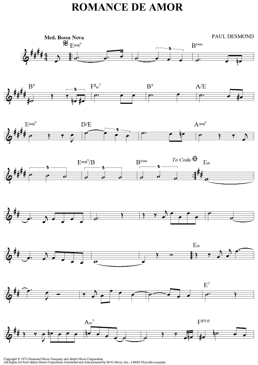 Digital Sheet Music for Romance De Amor by Paul Desmond scored for Lead Sheet; id:456684