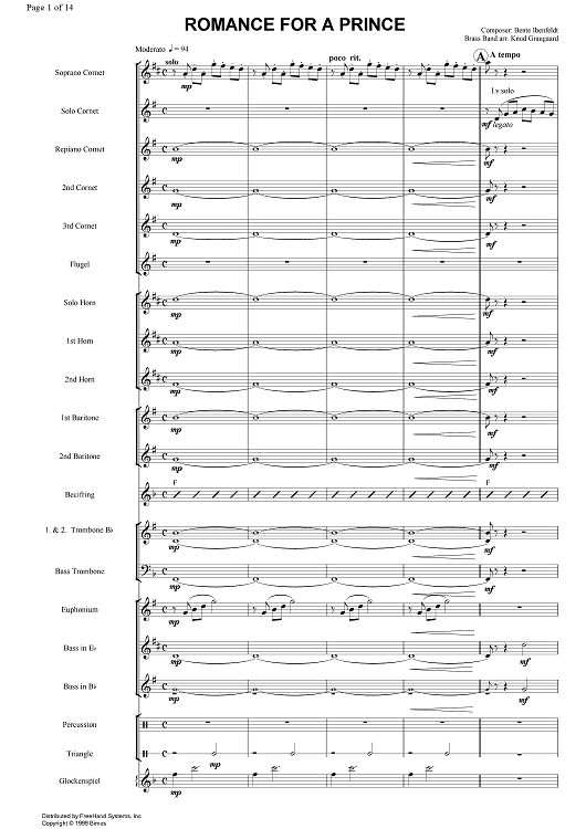 Digital Sheet Music for Romance for a Prince - Score by , Knud Graugaard, Bente Ibenfeldt scored for Brass Band; id:354110
