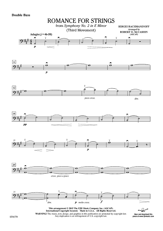 Digital Sheet Music for Romance for Strings - Double Bass by Robert D. McCashin, Sergei Rachmaninoff scored for Orchestra; id:455552