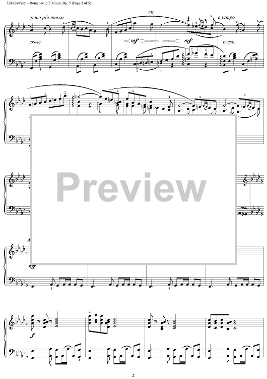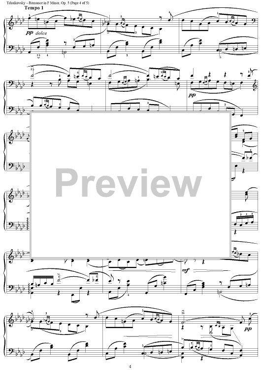 Digital Sheet Music for Romance in F minor (f-moll) by Peter Ilyich Tchaikovsky scored for Piano Solo; id:259738