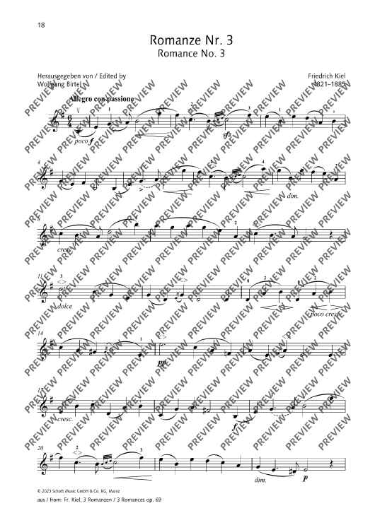 "Romance No. 3" Sheet Music by Friedrich Kiel