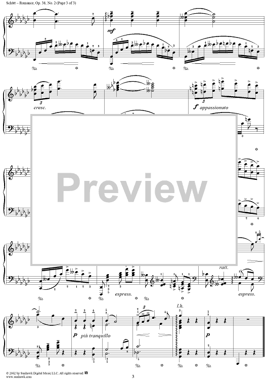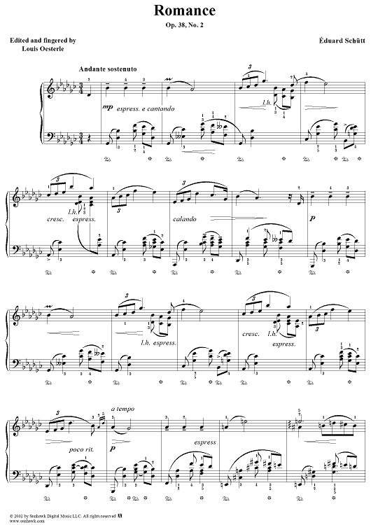 Digital Sheet Music for Romance, Op. 38, No. 2 by Eduard Schutt scored for Piano Solo; id:270542