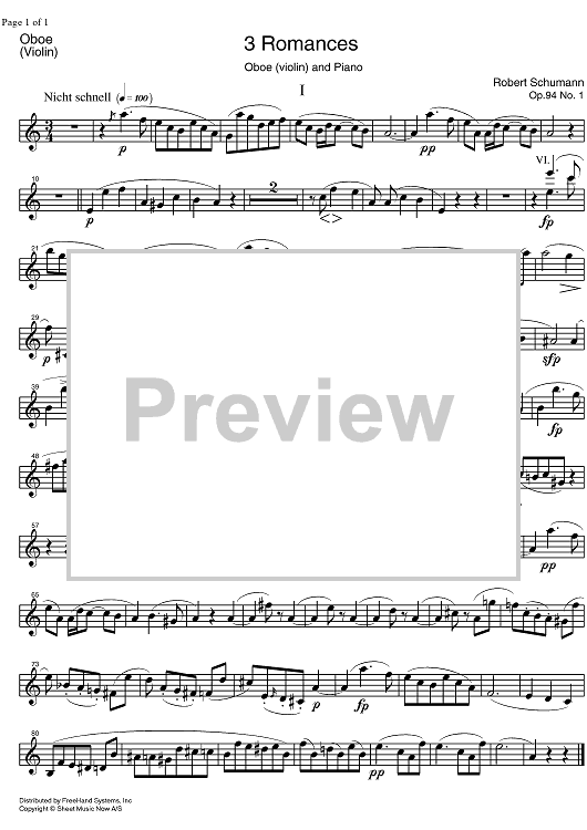 Digital Sheet Music for Romance Op.94 No. 1 - Oboe/Violin by Robert Schumann scored for Oboe or Violin/Piano; id:330361