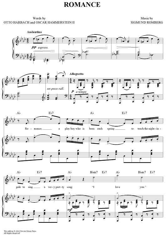 Digital Sheet Music for Romance by Sigmund Romberg, Oscar Hammerstein II, Otto Harbach scored for Piano/Vocal/Chords; id:355957