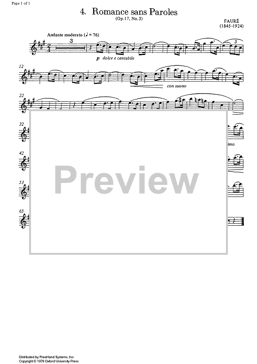 Digital Sheet Music for Romance sans Paroles (Op.17 No. 3) - Flute by Gabriel Fauré, Watson Forbes, Alan Frank scored for Flute/Piano; id:349216