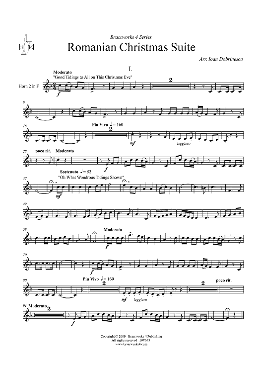 Digital Sheet Music for Romanian Christmas Suite - Horn 2 in F by Various, Ioan Dobrinescu scored for Brass Ensemble; id:411345