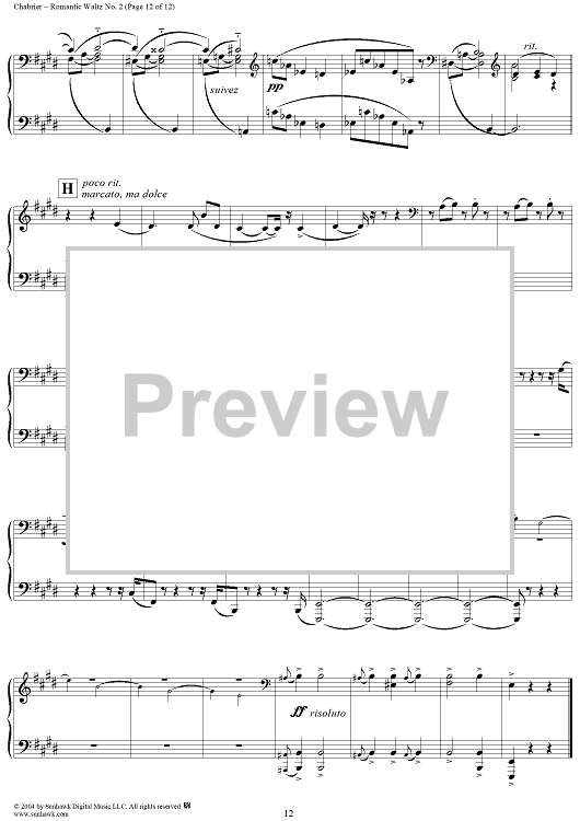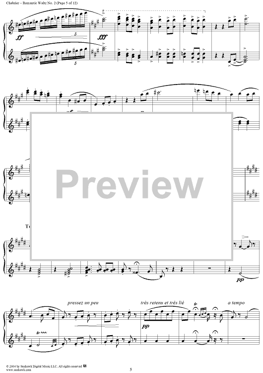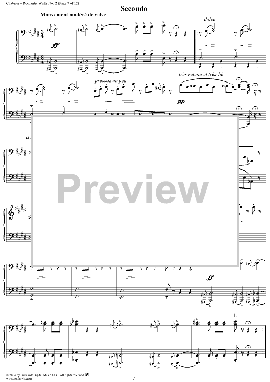 Digital Sheet Music for Romantic Waltz No. 2 by Emmanuel Chabrier, Alfred Cortot scored for 1 Piano, 4 Hands; id:303224