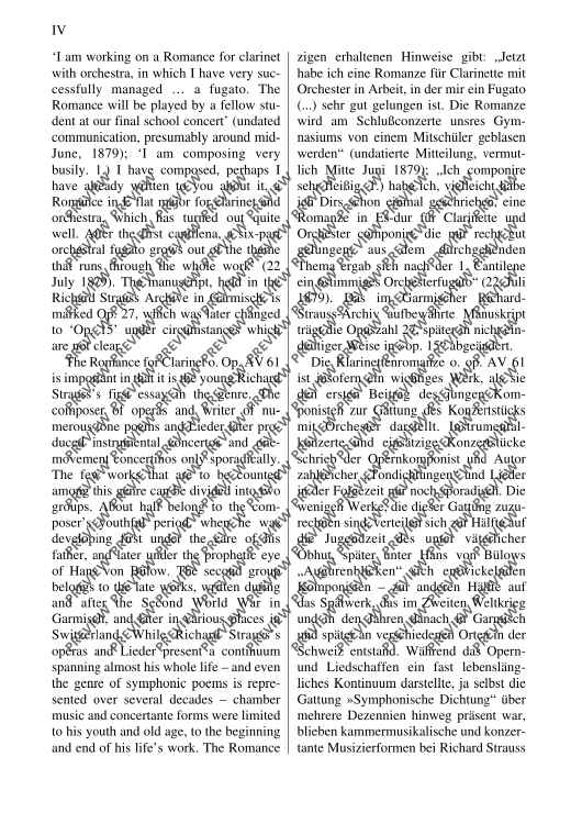 This romance for clarinet is an important work because it is the composer's first attempt at writing a concert piece with orchestra. Richard Strauss wrote it in 1879 for a fellow pupil. In a letter to Ludwig Thuille he remarked: 'I have been very industrious - maybe I have told you already - composing a romance in E flat major for clarinet and orchestra, which has turned out quite well; the continuous theme turns after the cantilena into a 6-part orchestral fugato.'