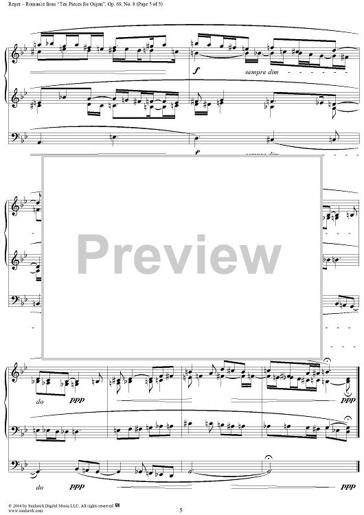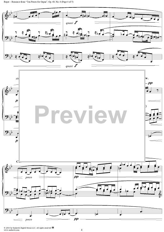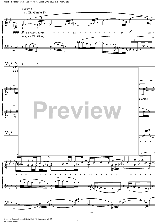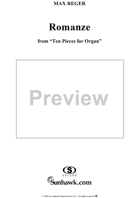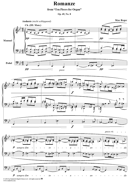 Digital Sheet Music for Romanze, No. 8 from "Ten Pieces for Organ", Op. 69 by Max Reger scored for Organ Solo; id:297889
