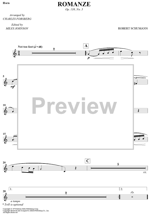 Digital Sheet Music for Romanze - Op. 138, No. 5 by Robert Schumann, Charles Forsberg scored for Horn in F/Piano; id:438045