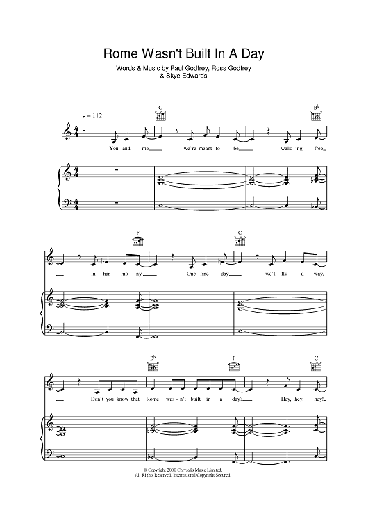 Digital Sheet Music for Rome Wasn't Built In A Day by Skye Edwards, Paul Godfrey, Ross Godfrey, Morcheeba scored for Piano/Vocal/Chords; id:402264